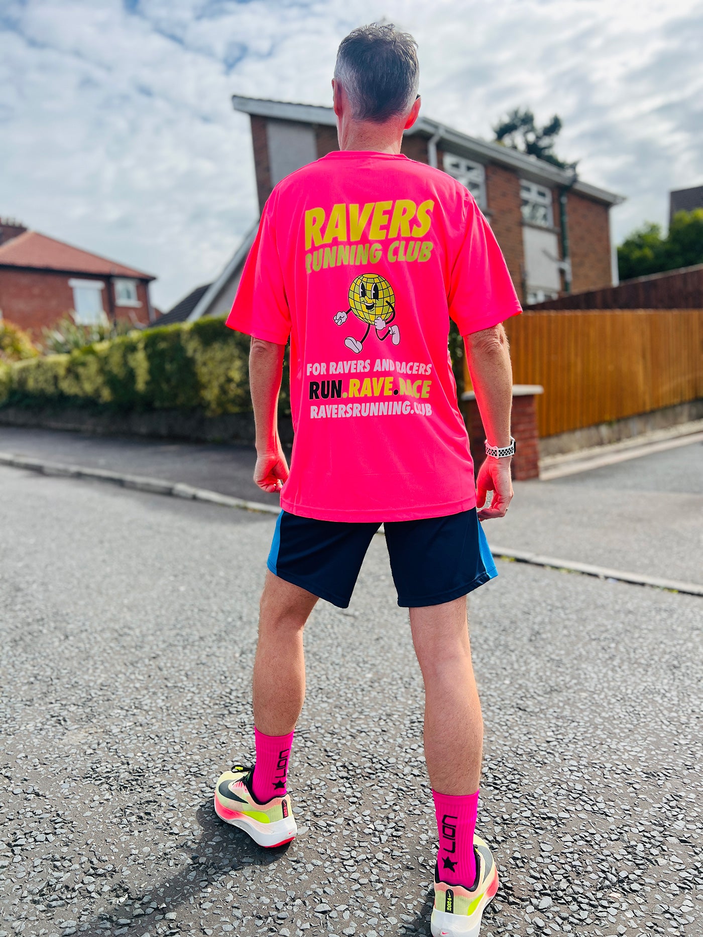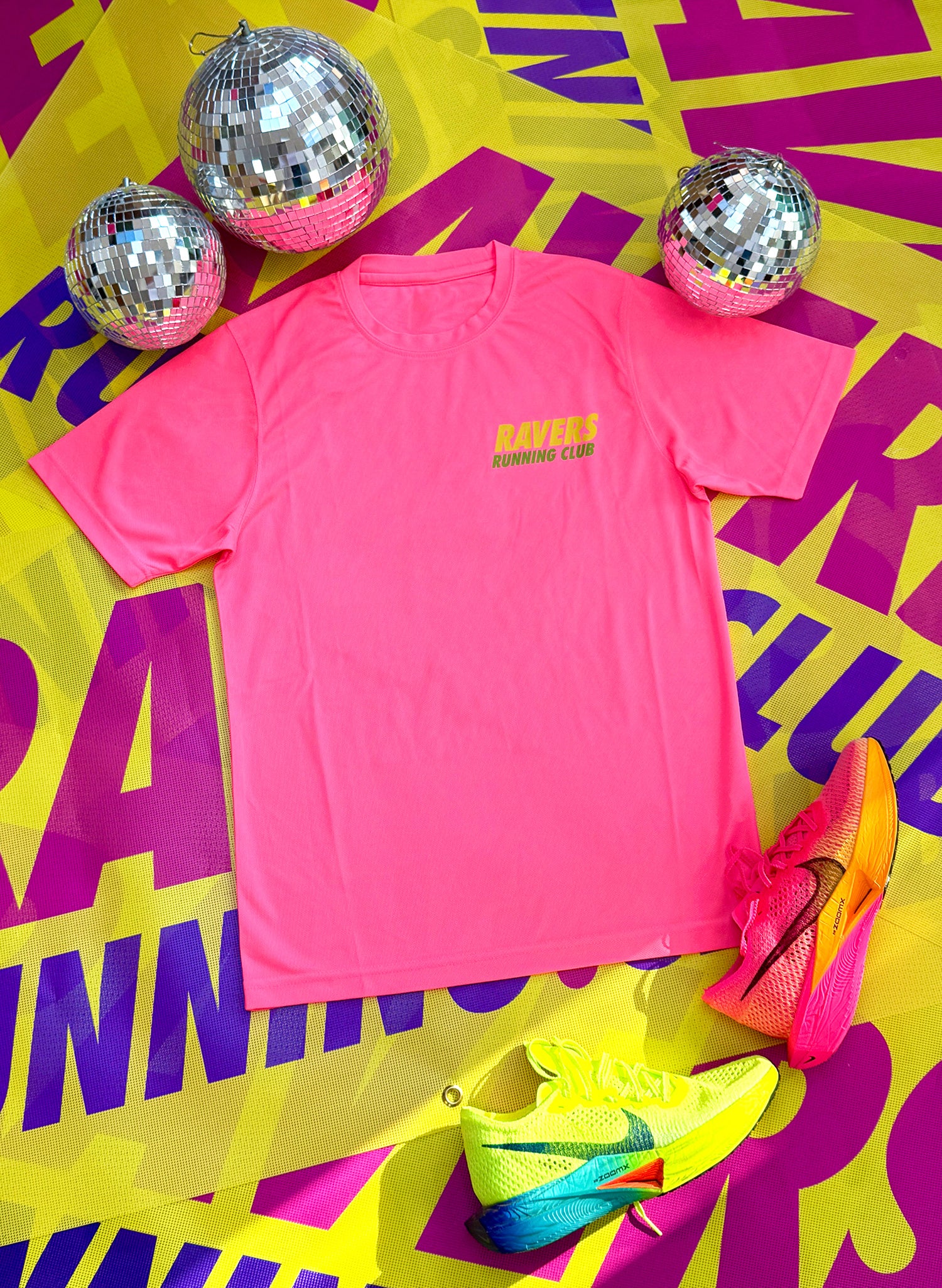 Light up your workouts and rave with confidence in the Electric Pink Ravers Running Club Sports T-Shirt! Highly bright and visible, this eye-catching tee is perfect for early morning runs, late-night training sessions, or adding a vibrant splash to your festival outfit.
