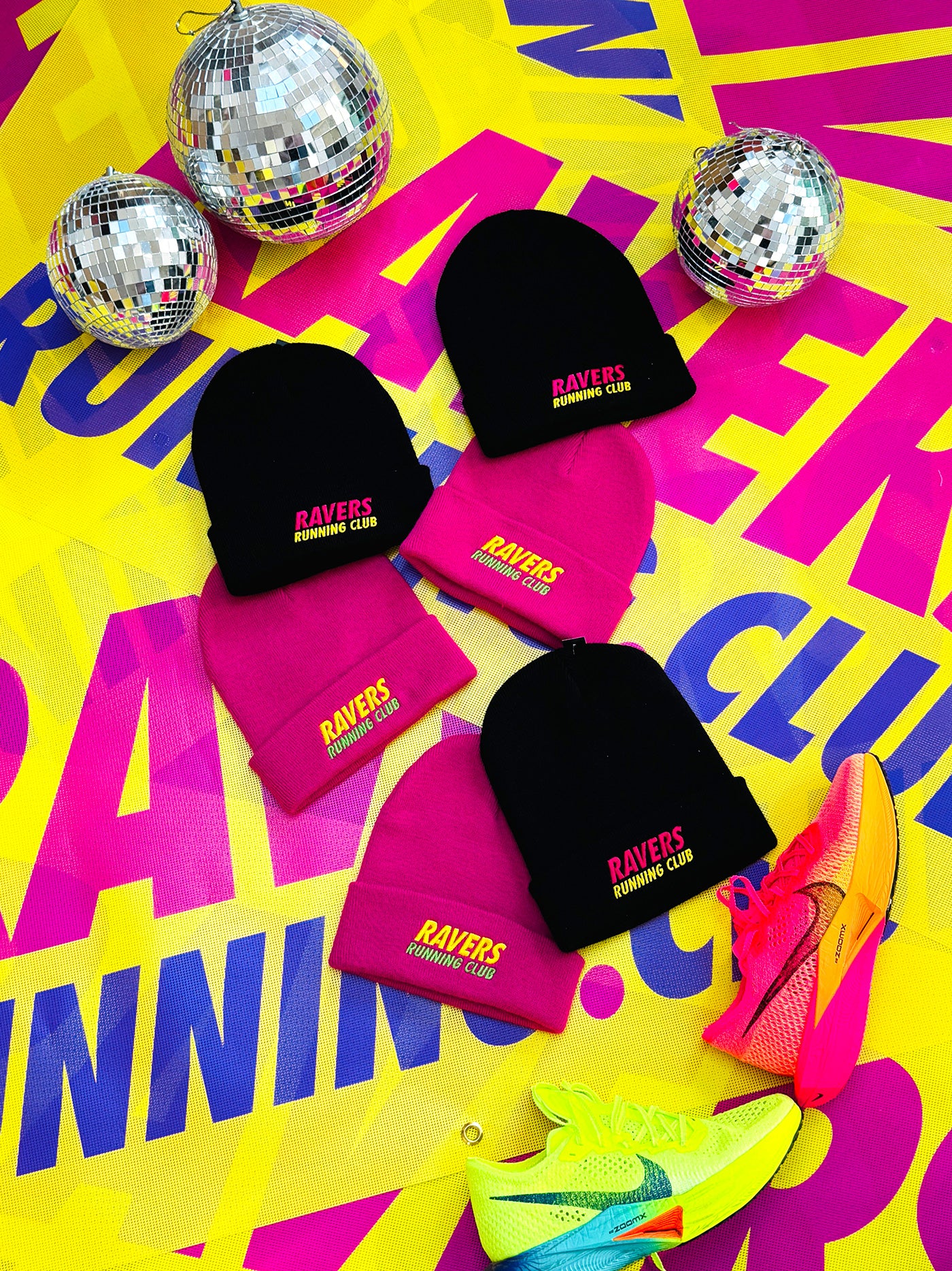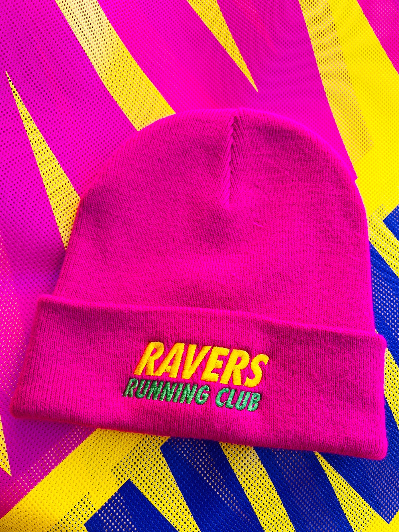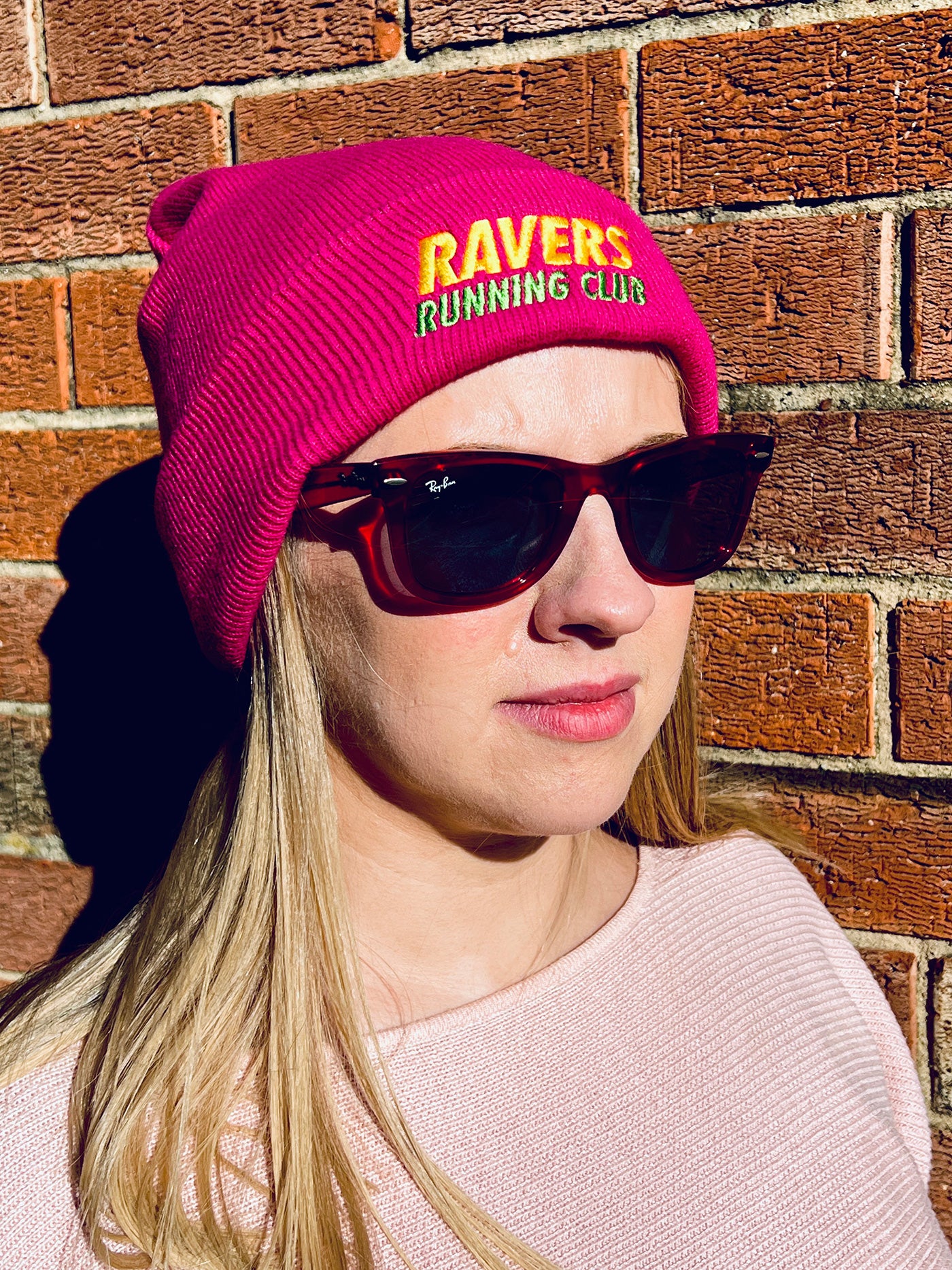 Crafted from comfortable acrylic fabric, this hat features the bold, embroidered RAVERS RUNNING CLUB logo on the front, adding a pop of energy to your winter wardrobe. Available in two standout colors—Fuchsia for a fun, vibrant look or Black for a sleek, classic vibe.