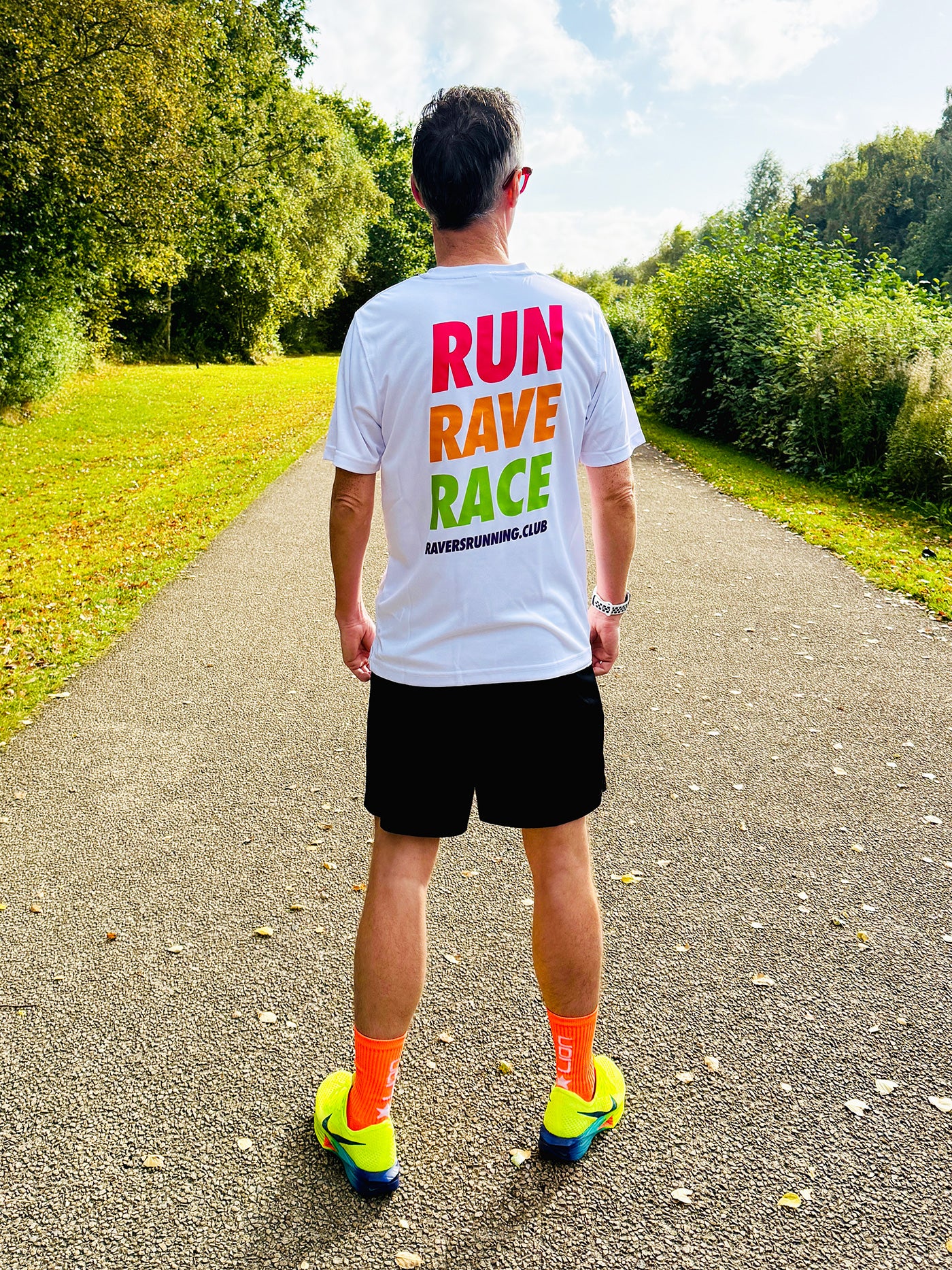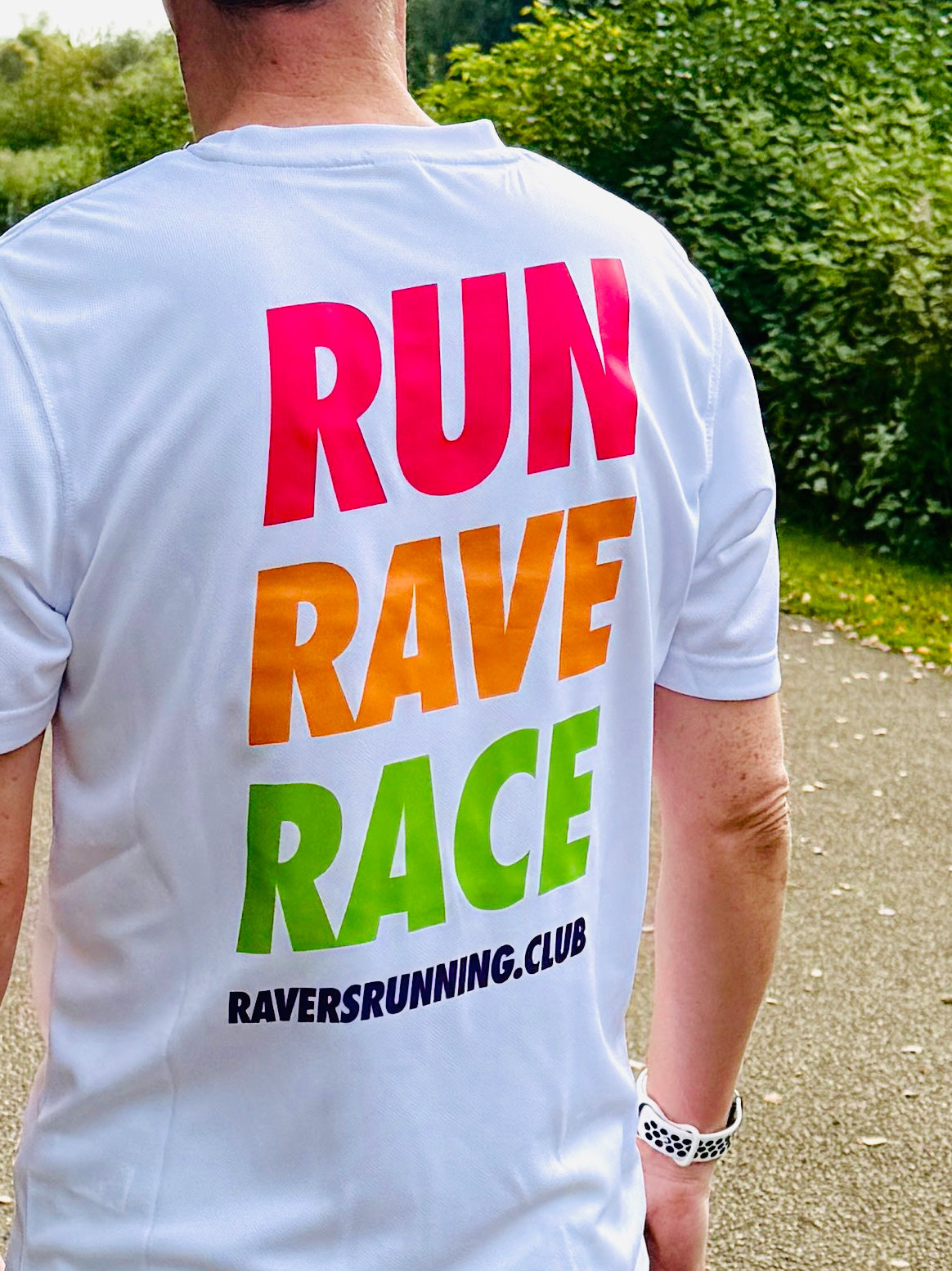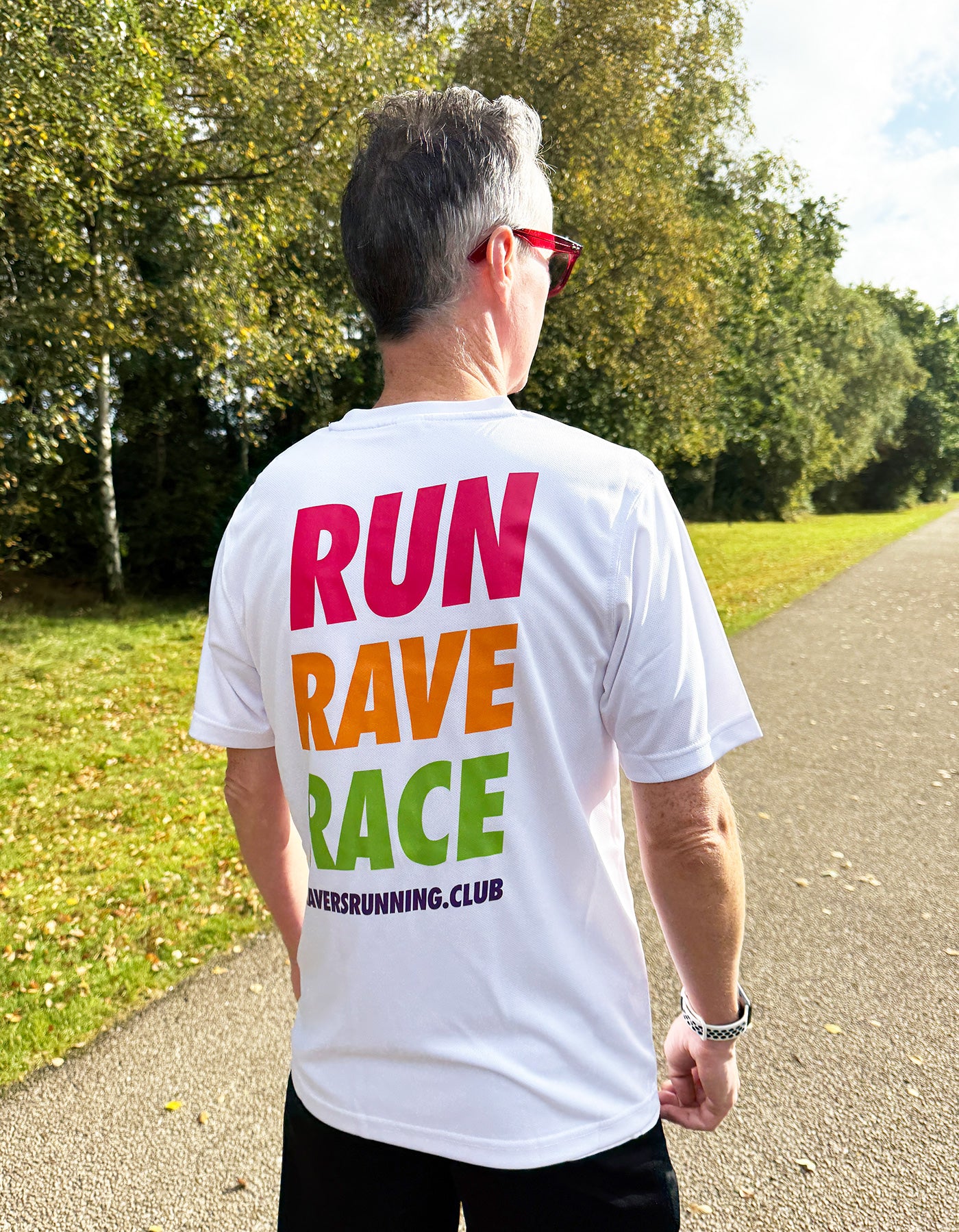 Take your workouts to the next level with the RUN RAVE RACE Ravers Running Club sports tee! Built for movement, this lightweight, quick-drying t-shirt will keep you comfortable and motivated, no matter how intense your session gets.